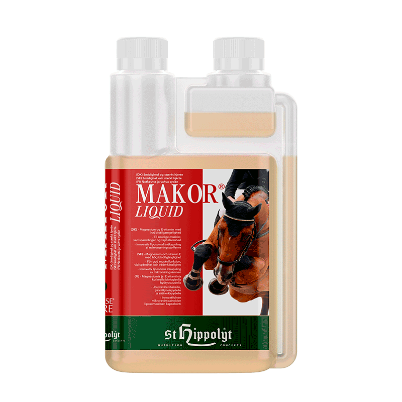 Til dette formål har produktet Makor en sammensætning, der præcist imødekommer behovet: Biotilgængeligt magnesium + E-vitamin + urter der understøtter muskel- og nervesystemet. Valget mellem pellets og liquid giver fleksibilitet alt efter hestens behov og fodringssituation.