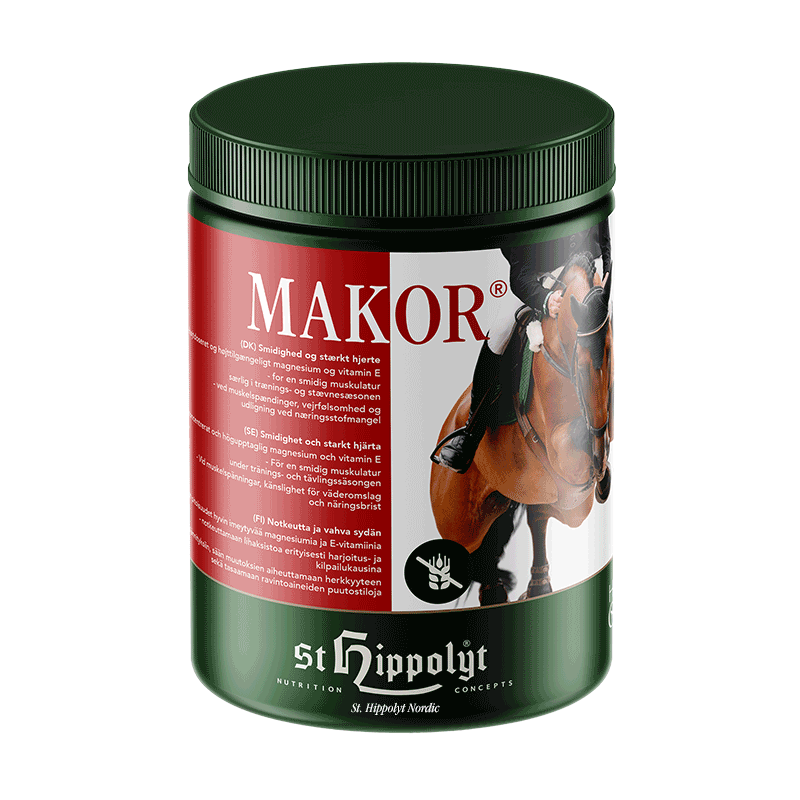 Hvis du har en hest, der viser tegn på spændt muskulatur, nervøsitet, har forandret fodring eller større belastning – så kan Makor være et relevant supplement. Selvfølgelig – det skal suppleres med god fodringspraksis, tilstrækkeligt grovfoder og en balanceret foderplan.