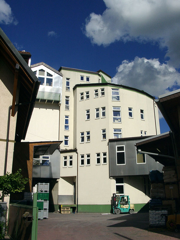 Haller med kontorsidebygning, som det ser ud i dag