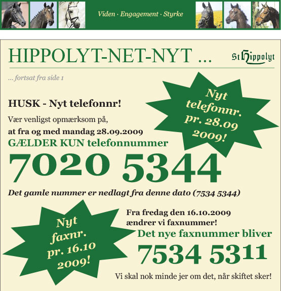 Har man særlige spørgsmål om ernæring af sin hest, vil man i de fleste tilfælde kunne få hjælp hos forhandleren. Ellers kan forhandleren henvise til en foderkonsulent hos St. Hippolyt Danmark, som kan hjælpe.