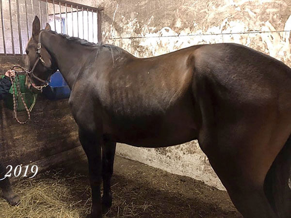 Bönä er en 5-årig standardtraver, som vi mødte i det tidlige efterår 2019. På det tidspunkt spiste Bönä havre og standardfoder. Den var tynd, muskelløs og led af maveproblemer, men klarede sig stadig godt til travløb. Det første billede er fra dette tidspunkt.