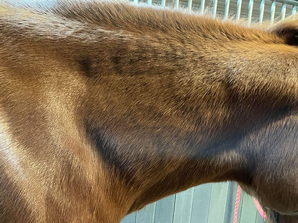 Vi kommer i kontakt med hestens ejer i marts 2023, hvor hesten viser symptomber på muskelproblemer.