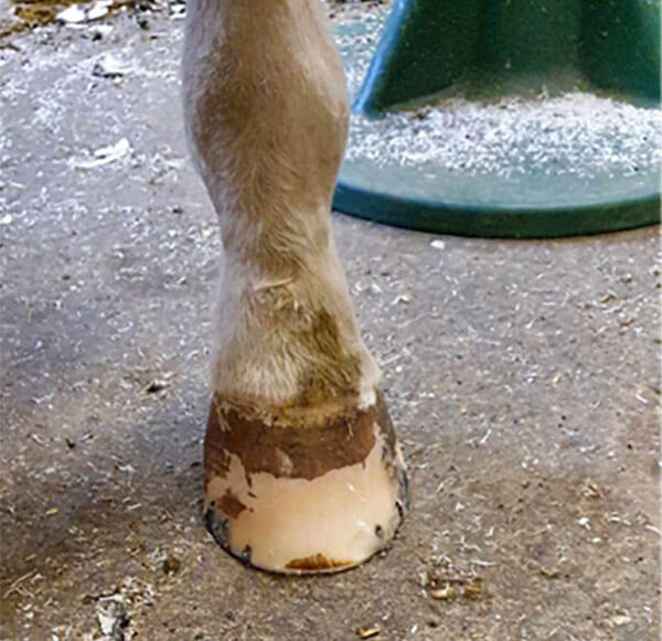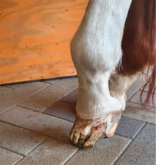 I 2020 blev dyrlægen desværre nødt til at skære en stor del af den ene hov væk pga. sygt horn.