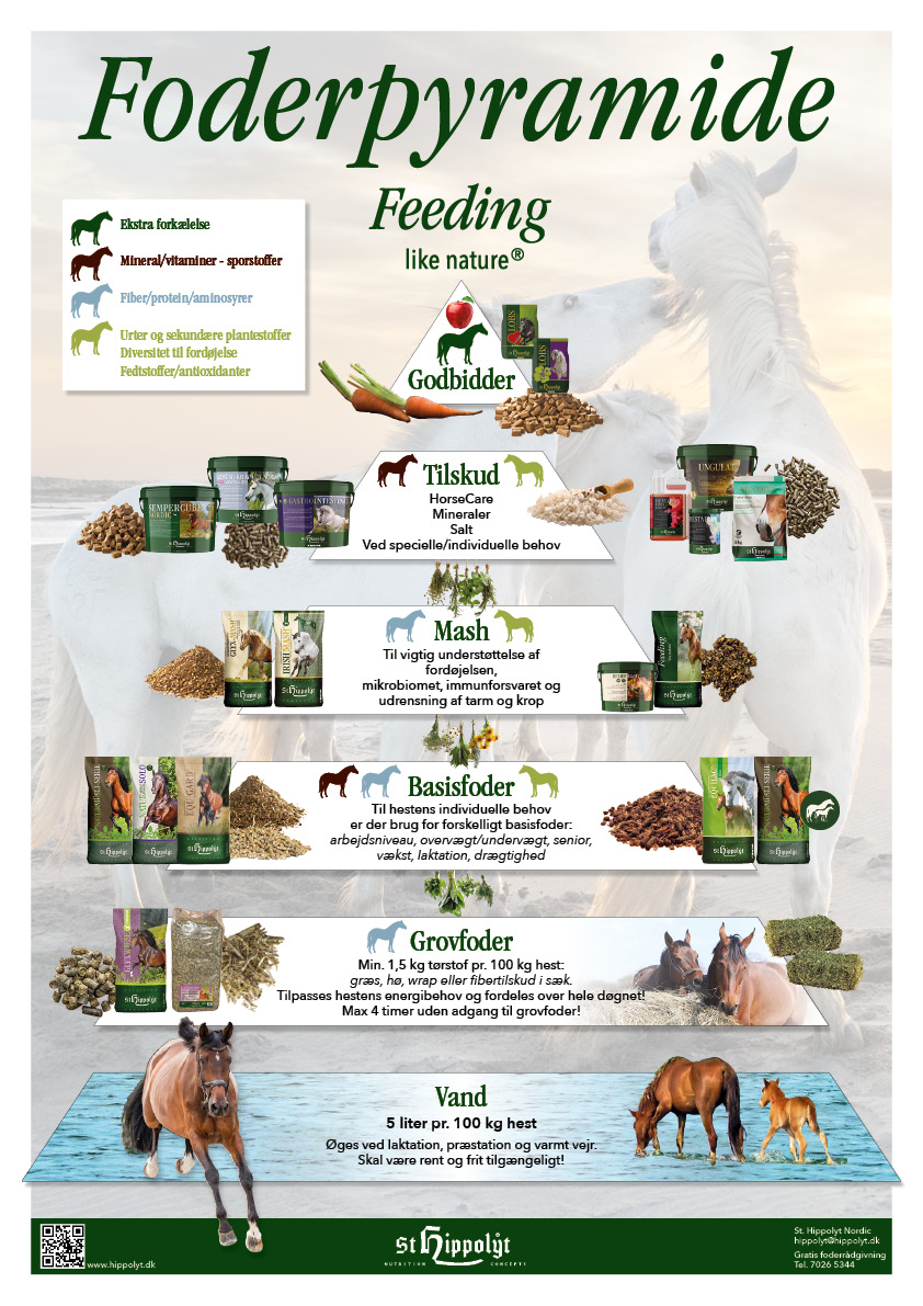 Du kender sikkert madpyramiden til dig selv – her har vi lavet en foderpyramide til din hest!