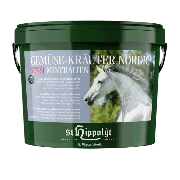 Vitamin-mineraltilskud, der dækker hestens behov. Denne tilpassede variant indeholder alle de vigtige mineraler, sporstoffer og vitaminer, som hesten har brug for, men er helt fri for ingredienser fra korn, lucerne, soja og gær, som nogle heste ikke kan tåle. Det pelleterede tilskud er blandet med frugtfibre og rodfrugter med krydderier, der giver en god smag.