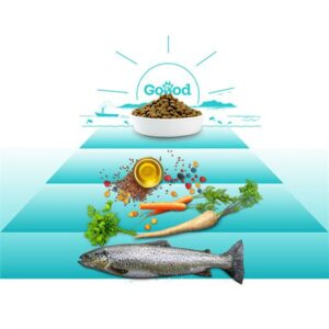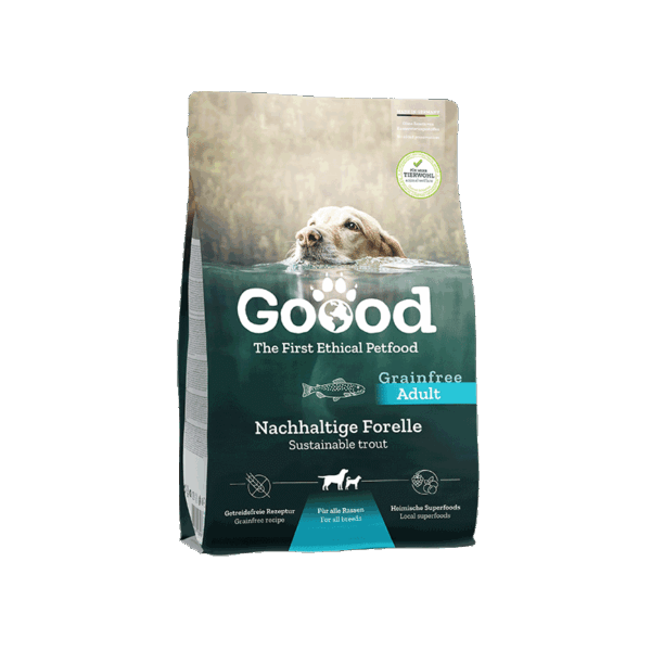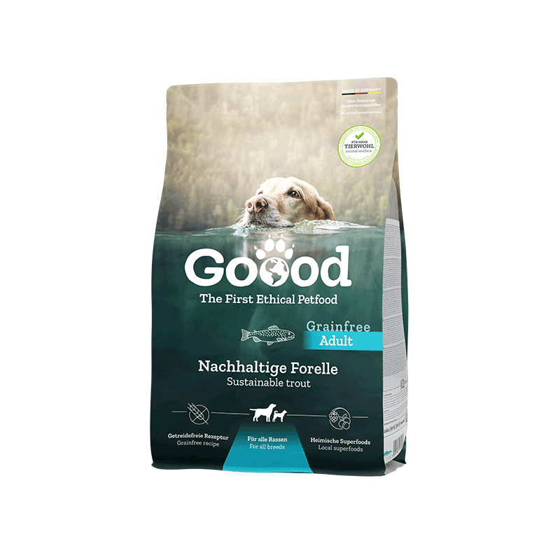 Ørreden kommer fra dambrug, hvor der lægges vægt på trivsel. De bliver opdrættet med naturligt foder, så de leverer proteiner af høj kvalitet. Vi henter vores grøntsager fra lokale landmænd. Den kornfri opskrift med fisk, solsikkeolie og hørfrø indeholder masser af omega-3- og omega-6 fedtsyrer – godt og nærende til hud og pels hos voksne hunde.