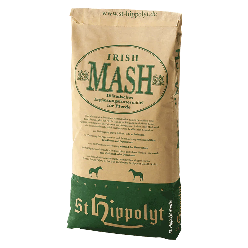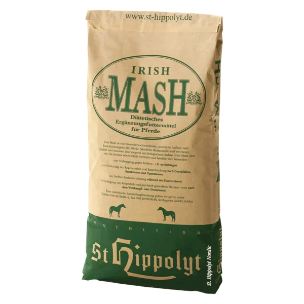 I århundreder har mash været anvendt efter hårdt arbejde eller under rekonvalescens. Irish Mash® er særdeles velsmagende og læner sig tæt op ad de oprindelige recepter med hvedeklid og hørfrø. Men samtidig er Irish Mash® videreudviklet efter de nyeste ernæringsvidenskabelige resultater. De gule hørfrø gør det pga. en meget skånsom valsetrykning muligt at tilberede mashen uden kogning. Den særlig gode fordøjelighed skyldes det lave indhold af stivelse, de forskellige fermenterede flager samt indholdet af ølgær. Irish Mash indeholder også værdifulde urter i form af koriander og malt-gær urt.
