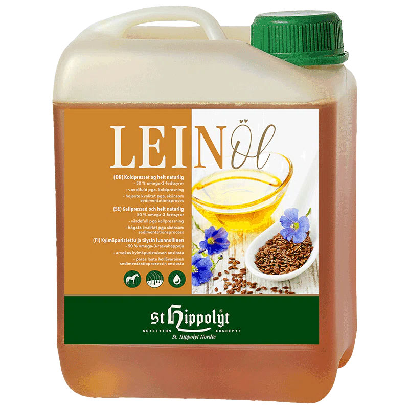 St. Hippolyts hørfrøolie (Leinöl) er en naturlig og righoldig kilde til de livsvigtige flerumættede omega-3 fedtsyrer. Hørfrø har den højeste koncentration af omega-3 fedtsyrer af alle kendte planteolier og er derfor meget følsom over for varme og mekanisk bearbejdning. Men St. Hippolyt Mühle Eberts koldpresning af denne hørfrøolie sikrer at omega-3 syrerne bevares og garanterer et produkt af højeste ernæringsmæssig værdi.
